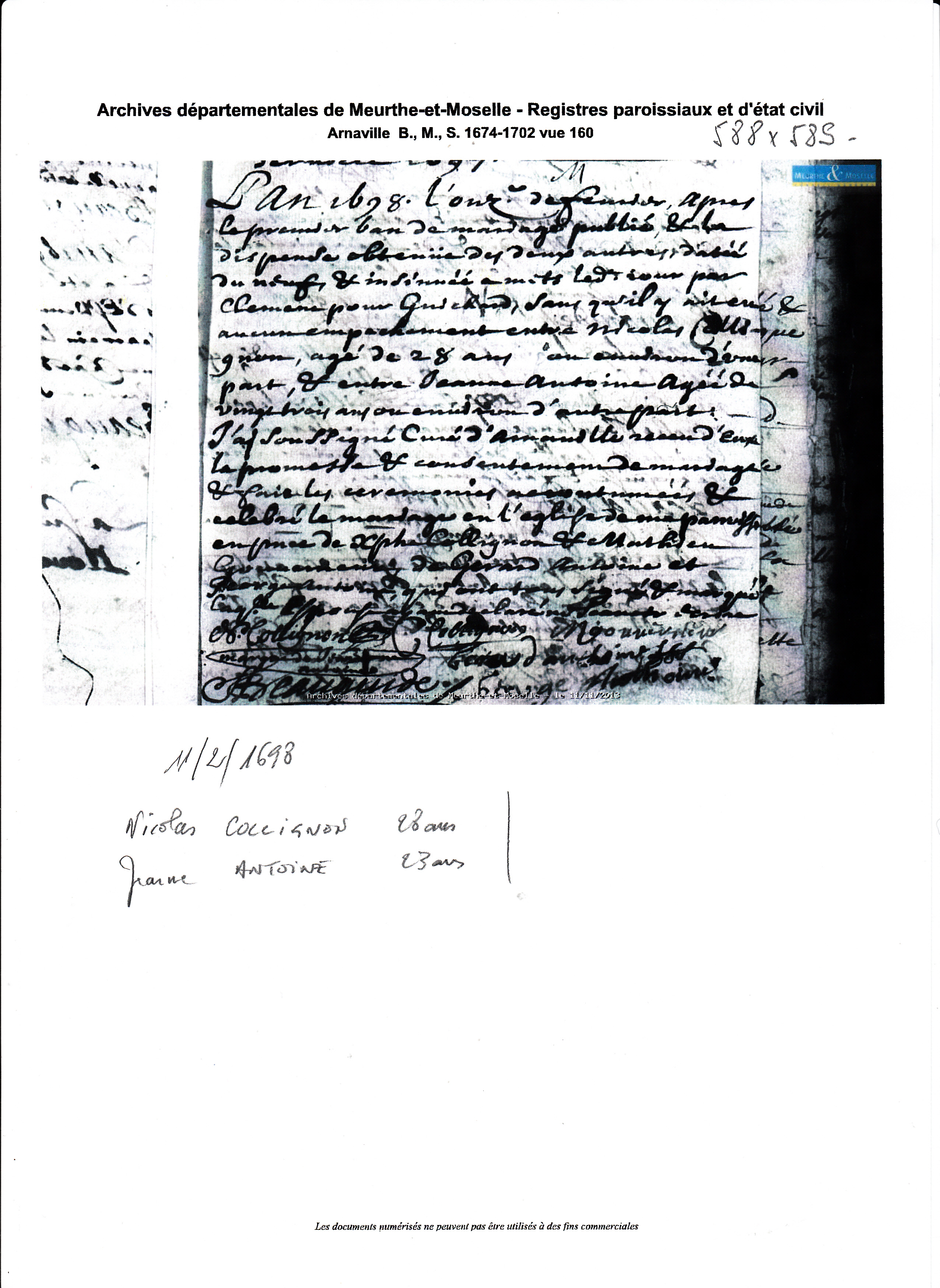 Mariage : 11 février 1698 à Arnaville 54530 ( Source )
