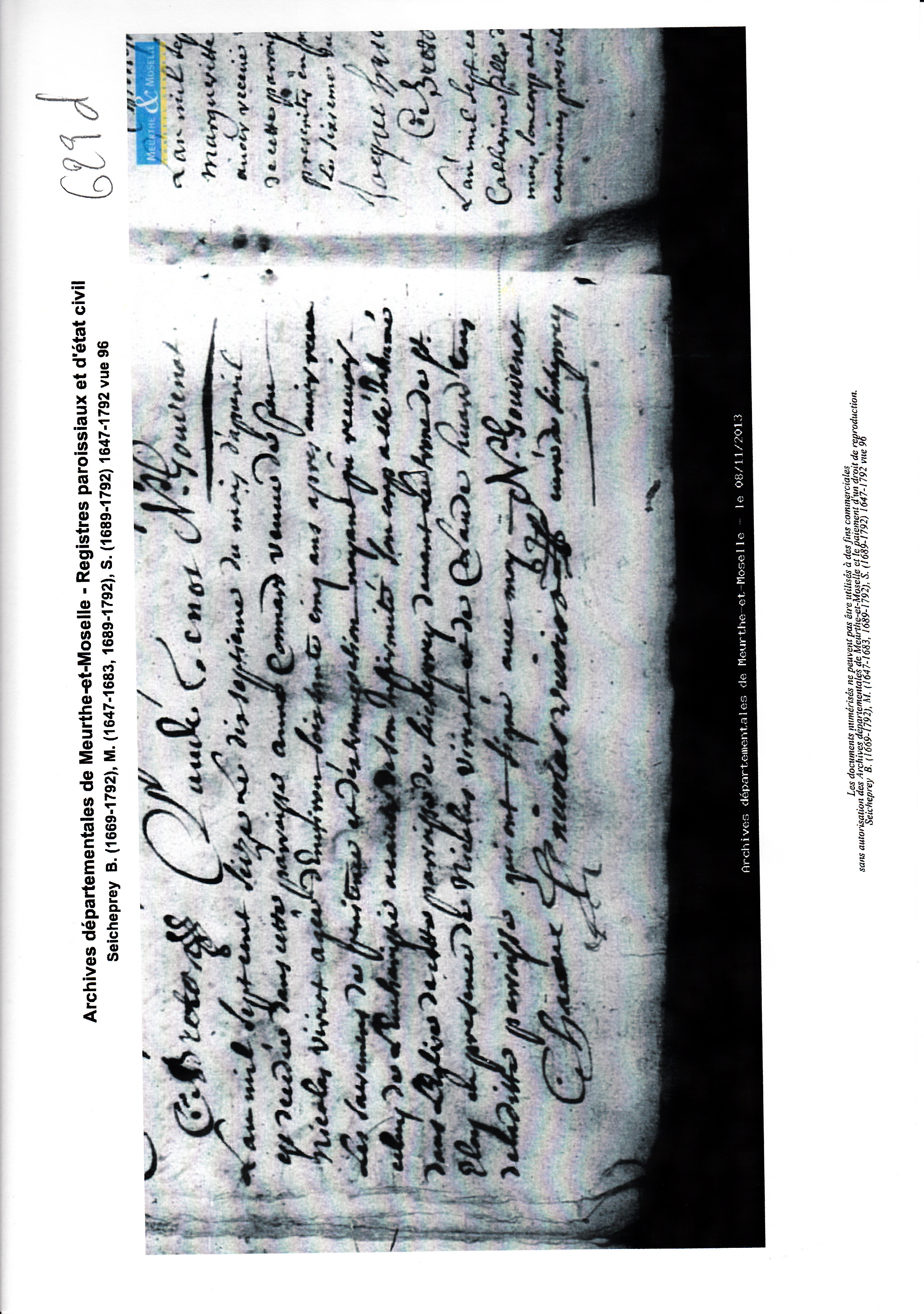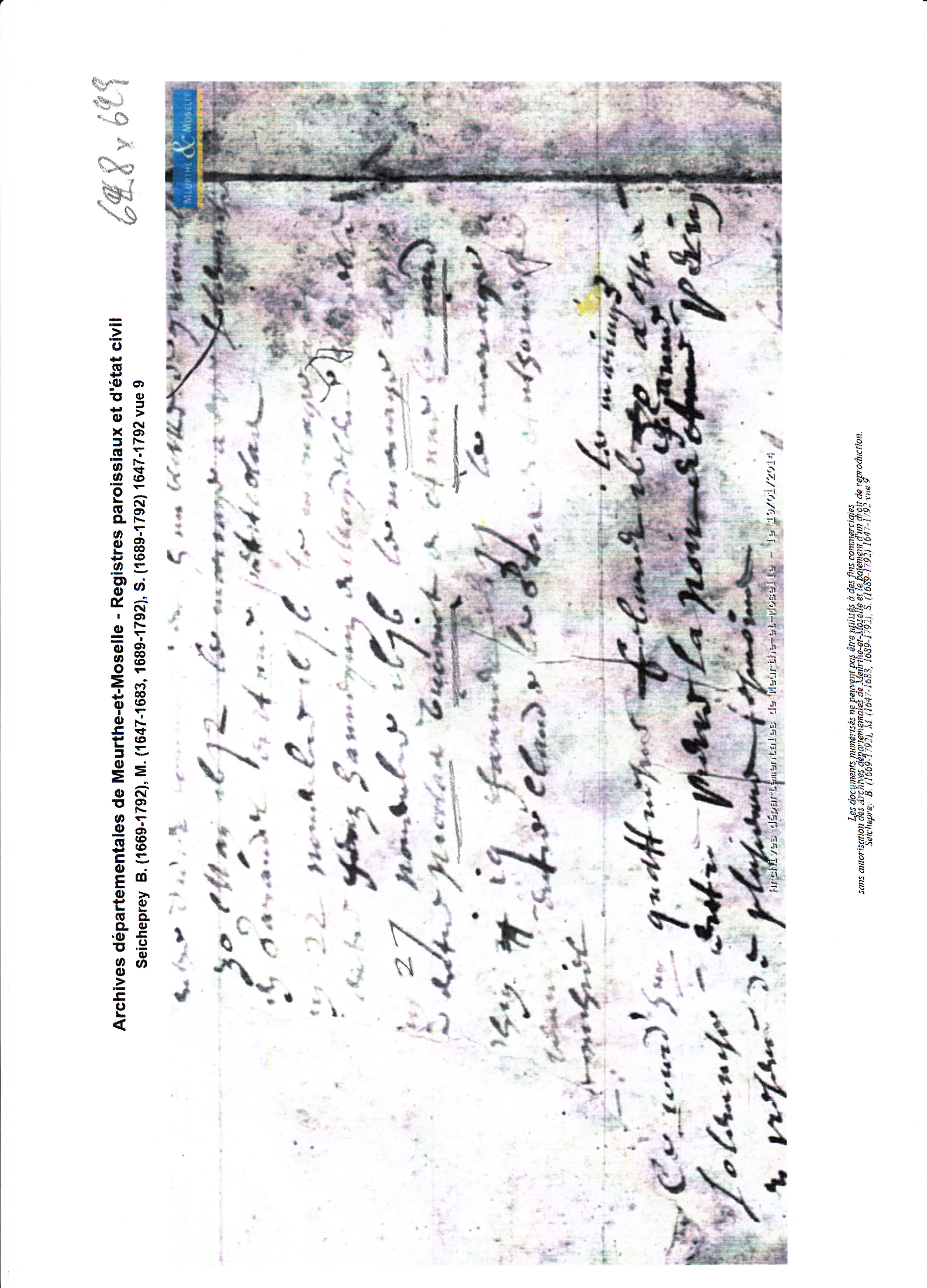 Naissance : vers 1651 à Seicheprey 54470