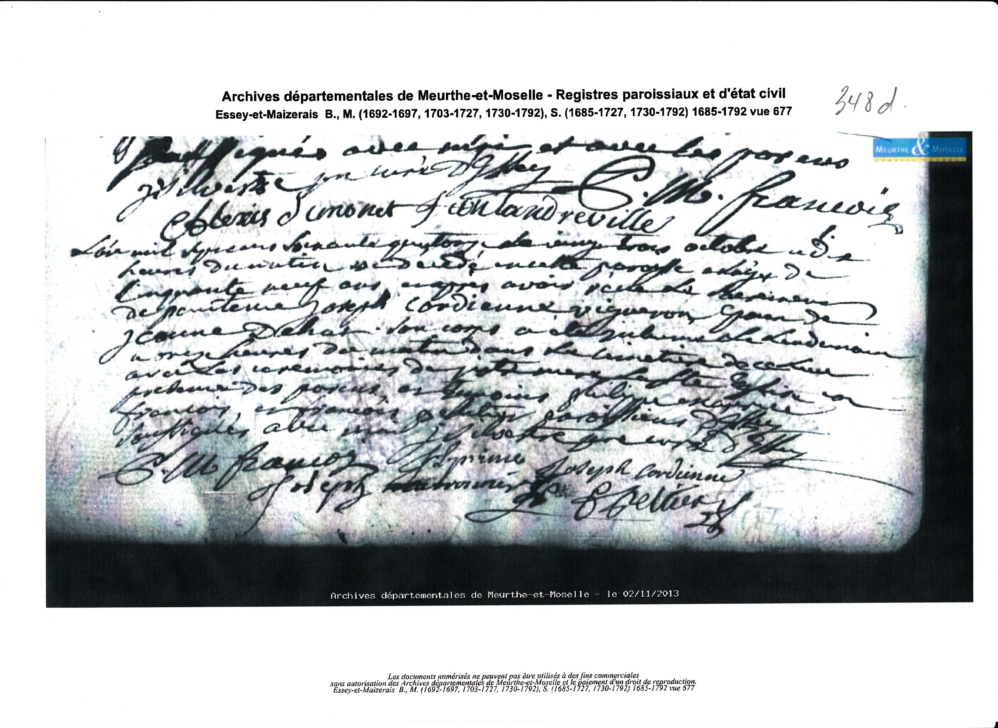 Mariage : 3 novembre 1739 à Essey et Maizerais 54470 ( Source )