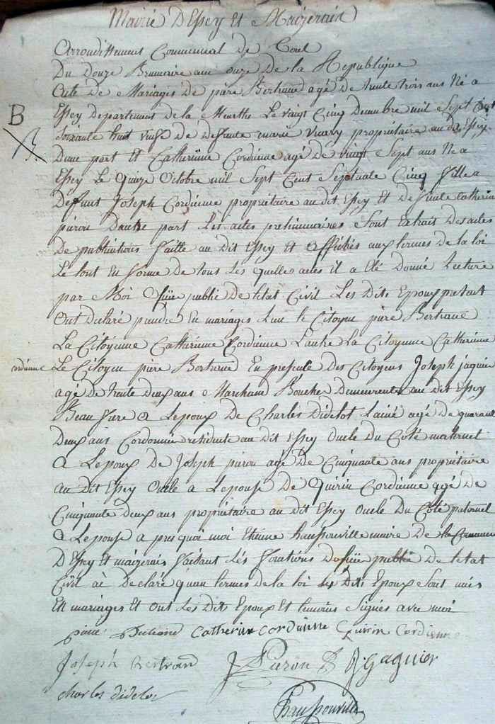 Témoins :CORDIENNE Quirin ( ~ 1750 - ? )
