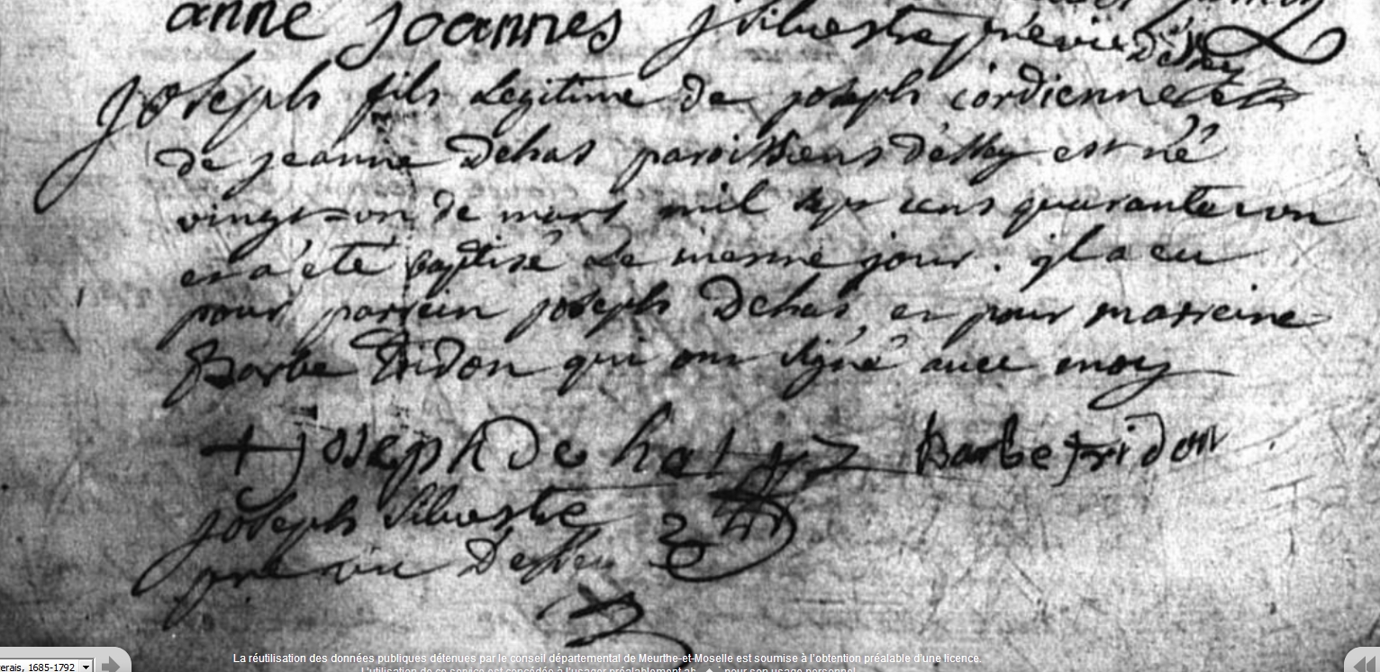 Témoin :DEHAS Joseph ( ~ 1680 - 1760 )