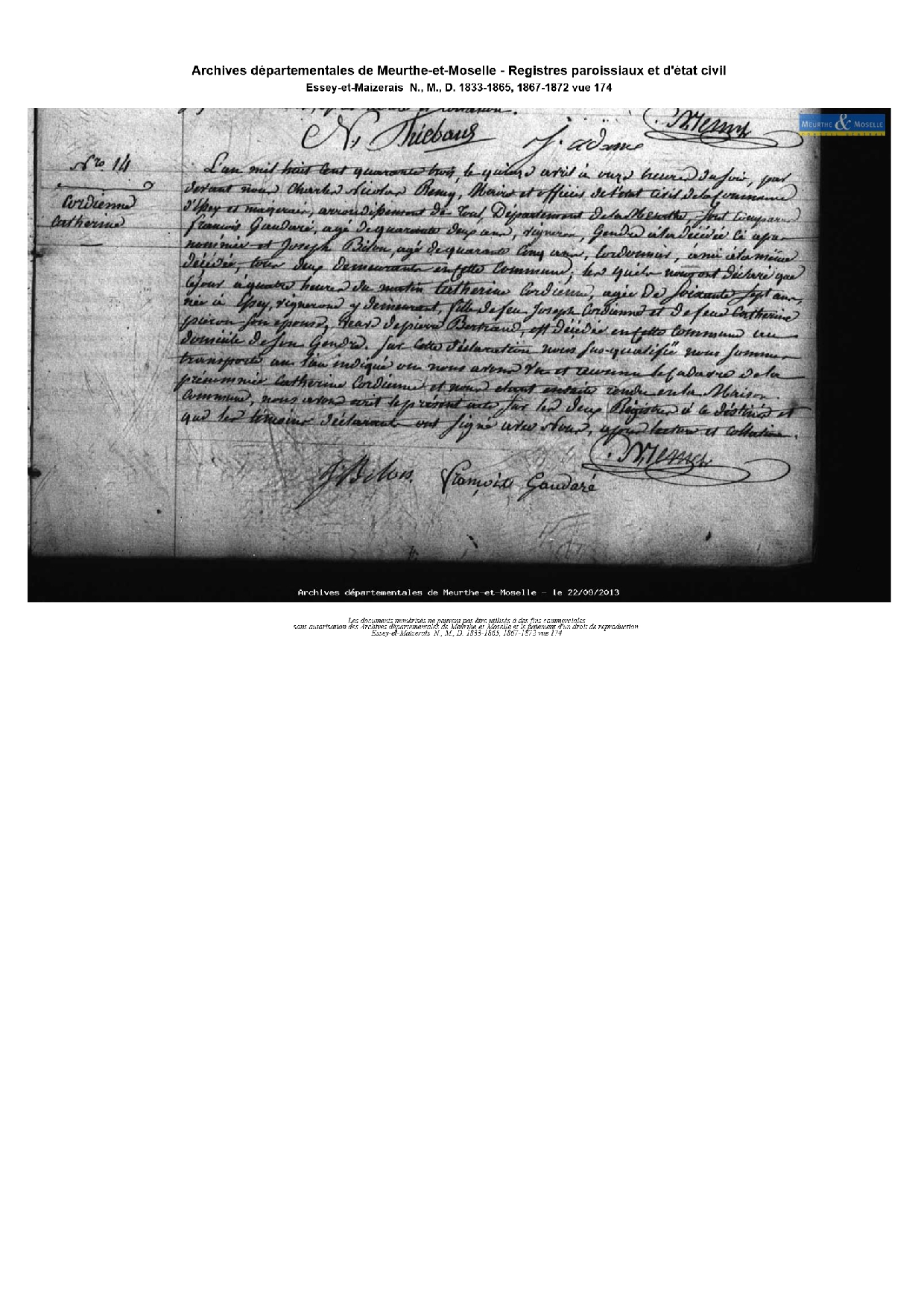 Naissance : 26 octobre 1775 à Essey et Maizerais 54470 ( Source )