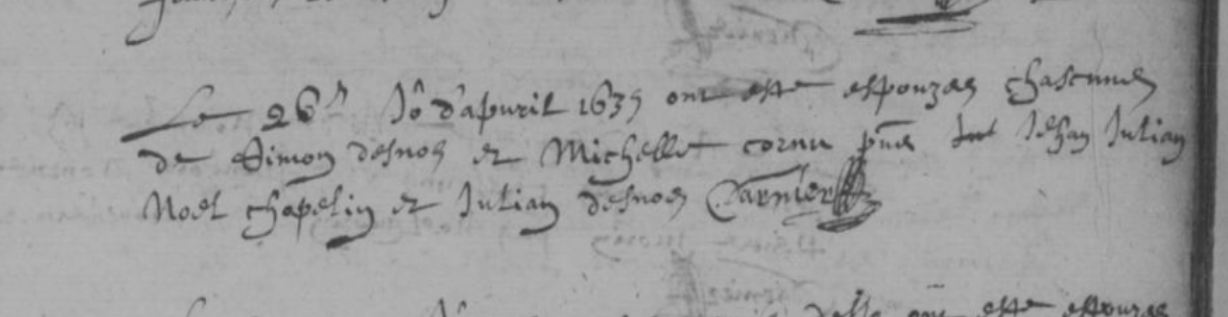 Mariage : 26 avril 1635 à Domfront-en-Champagne 72240 ( Source )