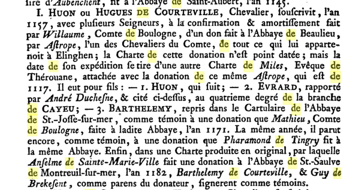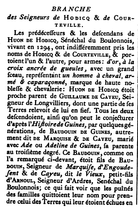 Autres enfants : COURTEVILLE HODICQ (de ) Huon II ( ? - ? )