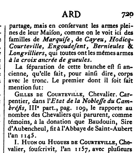 Autre enfant : COURTEVILLE HODICQ (de ) Hugues ( ? - ? )