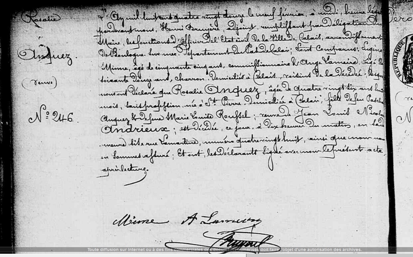 Décès : 9 février 1892 à Calais 62100 ( Source )