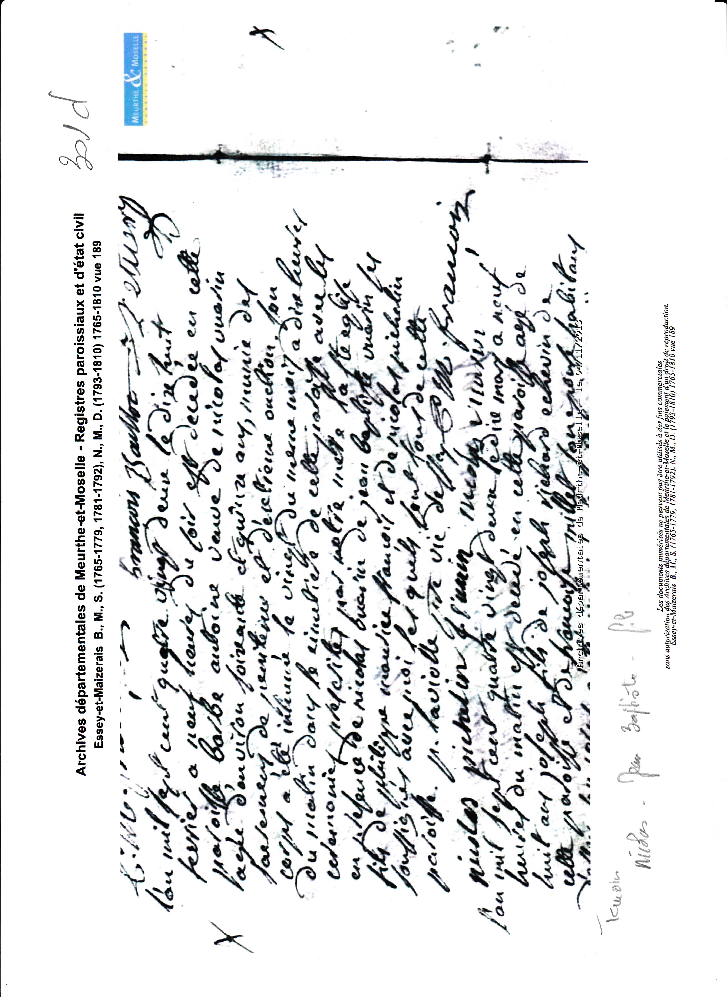 Pas trouvé entre 1700 et 1710 passages AD illisiblesDécès : 18 février 1782 à Essey et Maizerais 54470 ( Source )