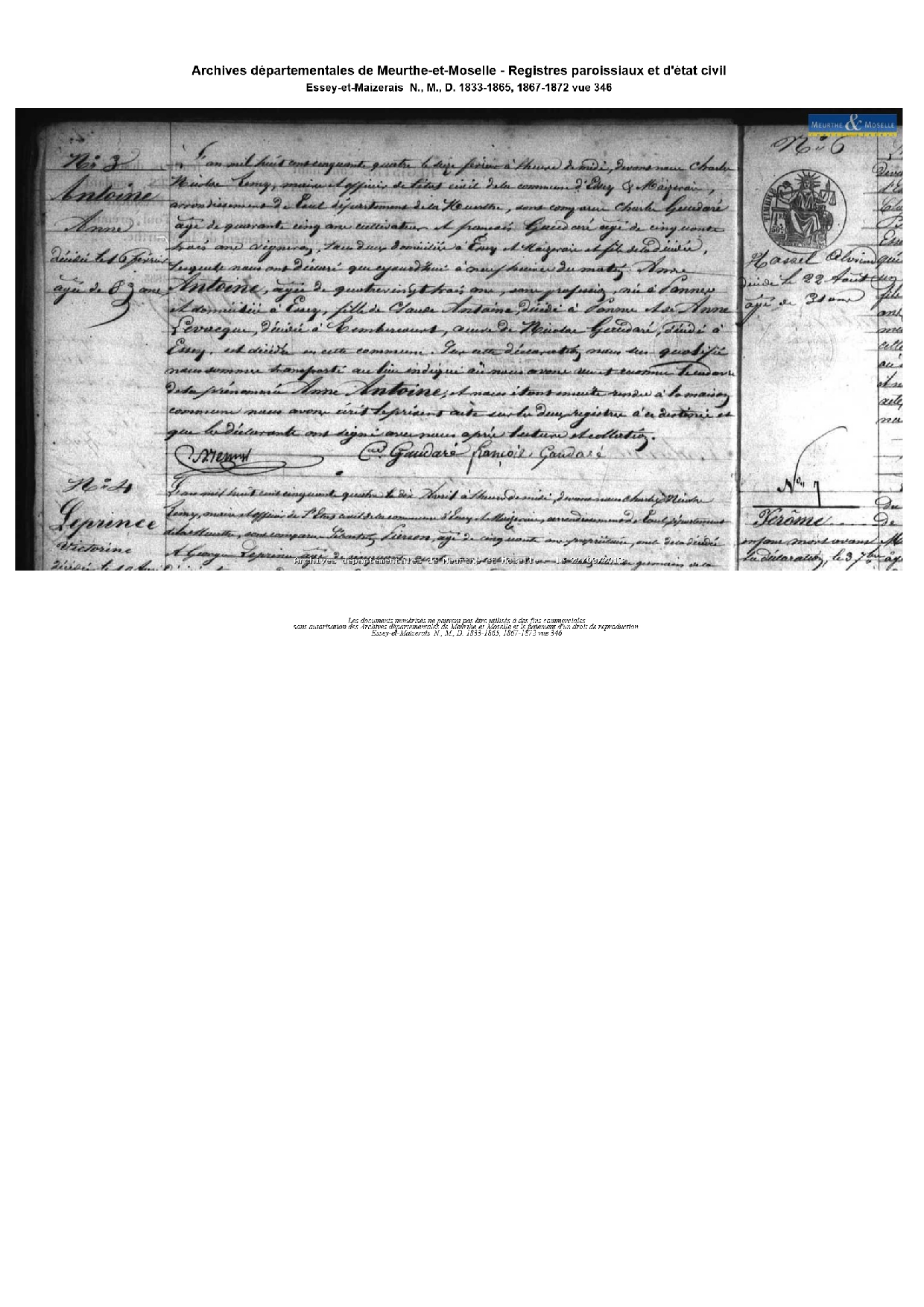 Décès : 16 février 1854 à Essey et Maizerais 54470 ( Source )