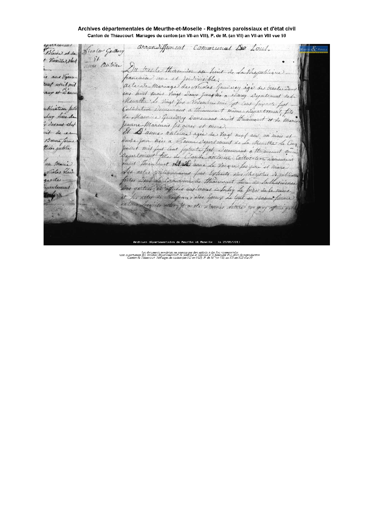 Mariage : 18 août 1800 à Pannes 54470 ( Source )