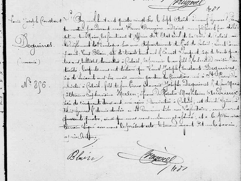 Décès : 7 août 1890 à Calais Saint Pierre 62100 Saint Pierre ( Source )