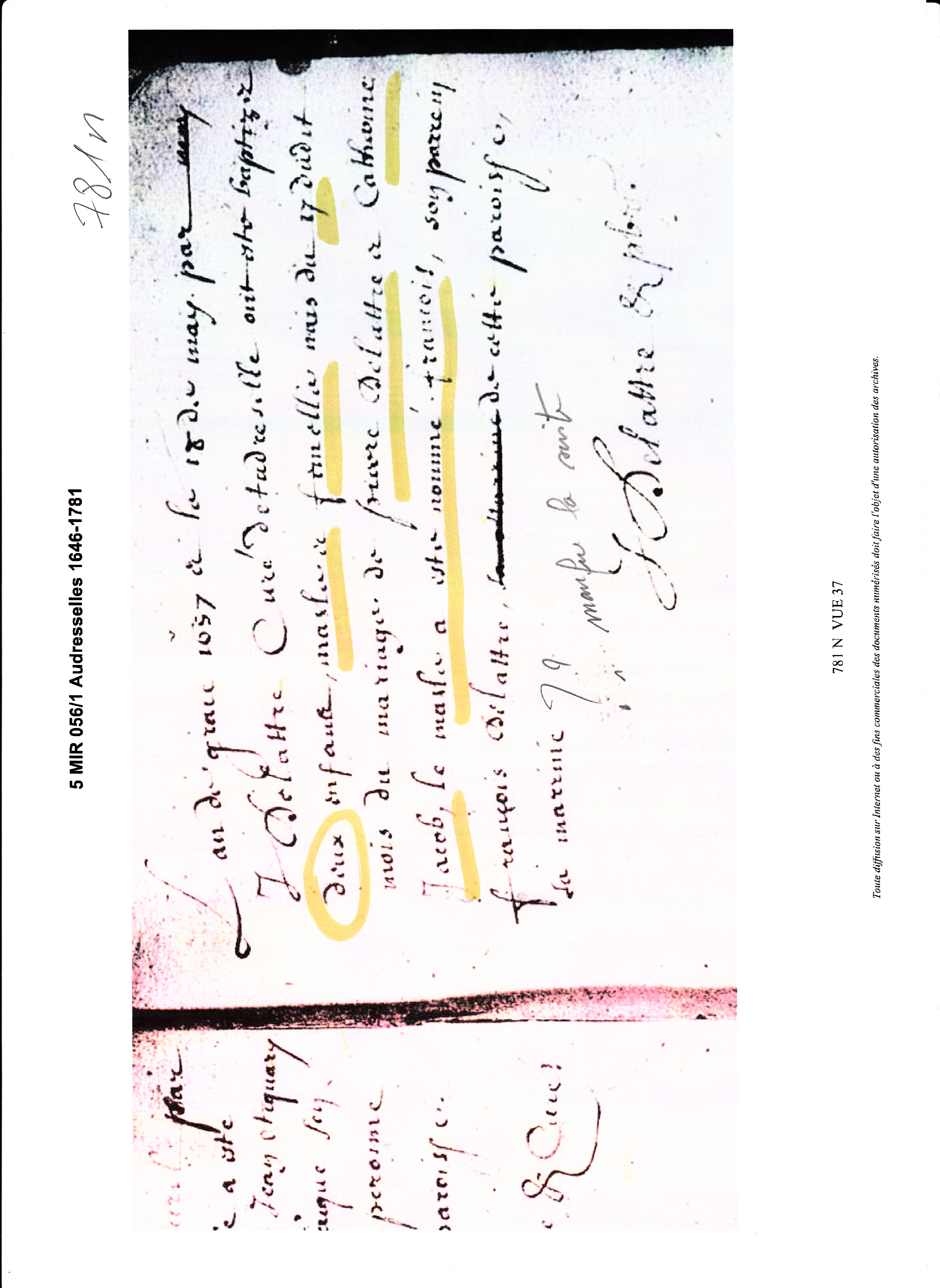 Père : DELATTRE Gabriel ( 1608 - 1692 )