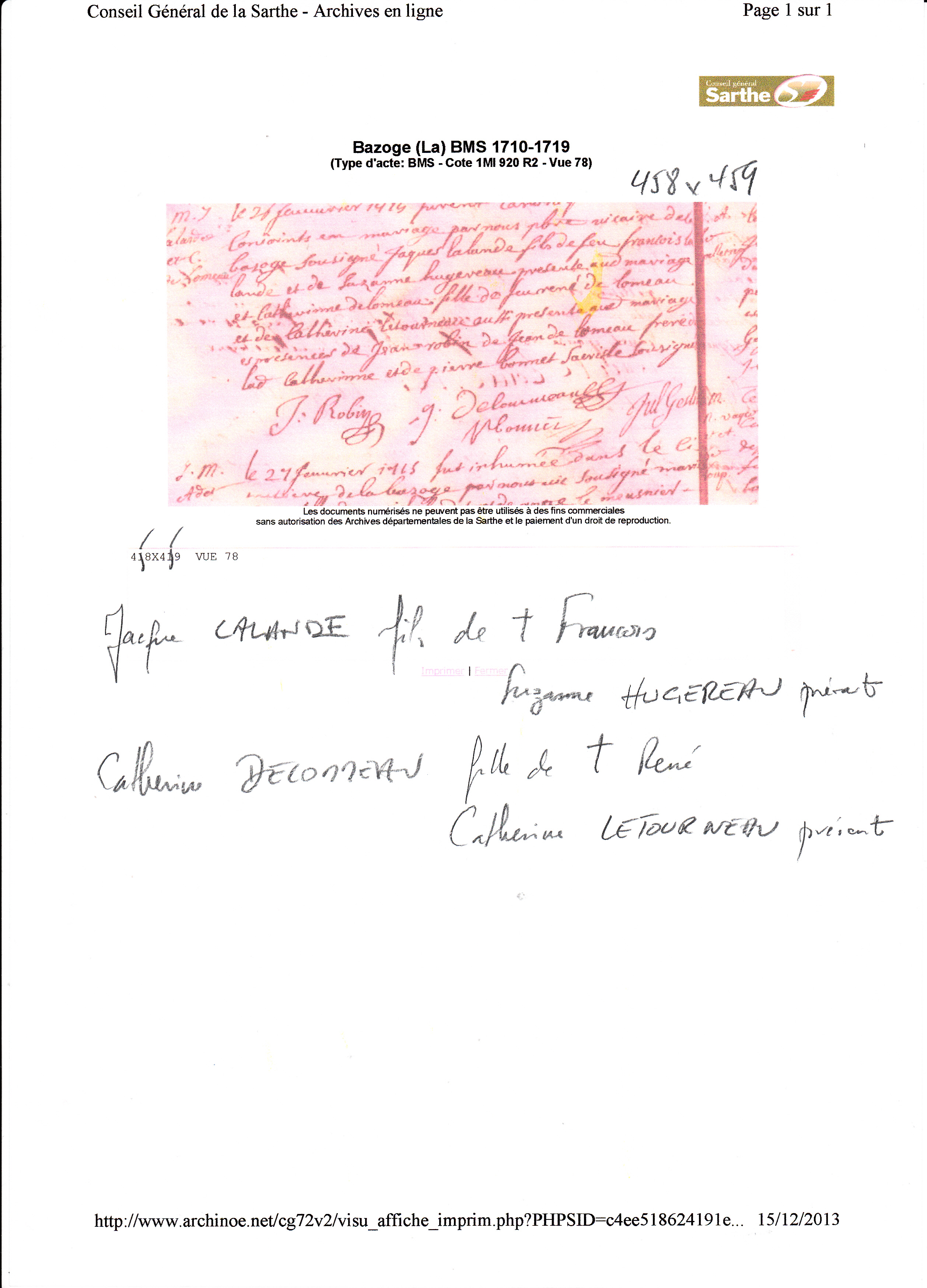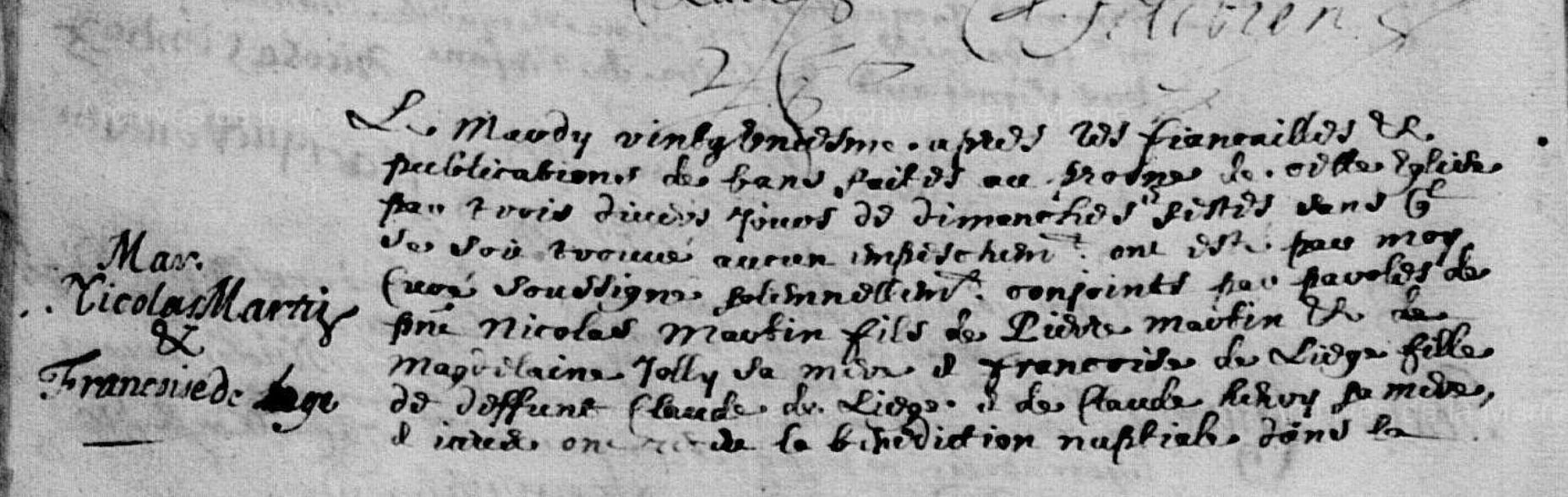 Mariage : 26 février 1715 à La Bazoge 72650 ( Source )