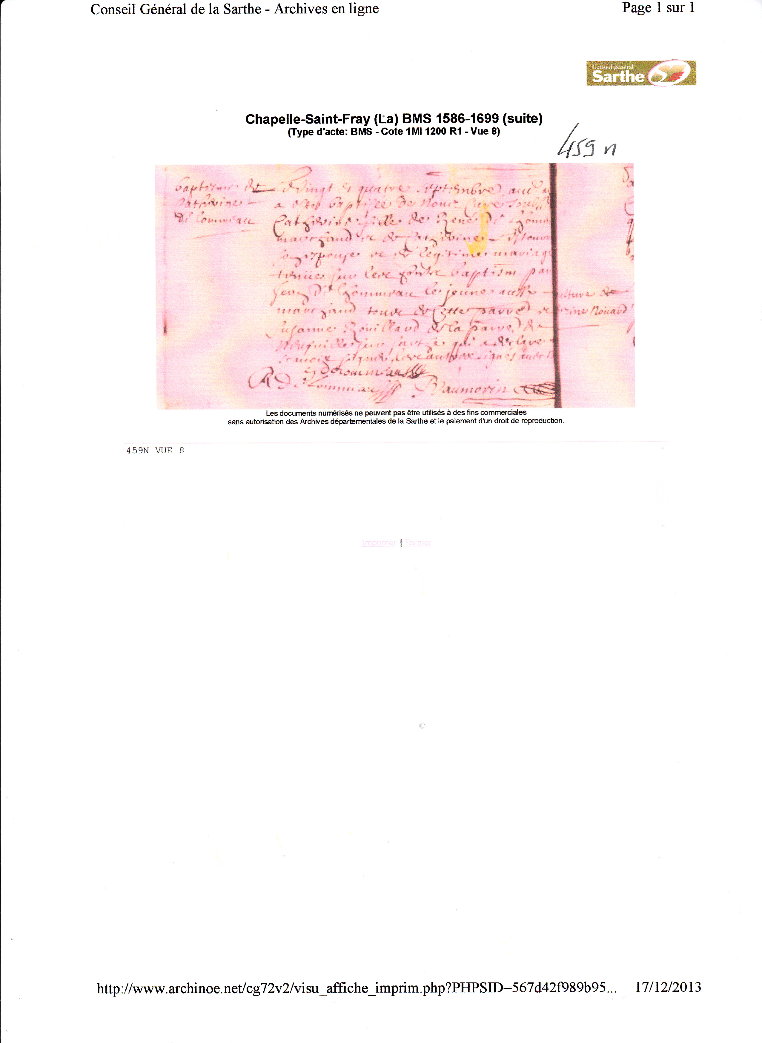Naissance : 24 septembre 1688 à La Chapelle-Saint-Fray 72240 ( Source )