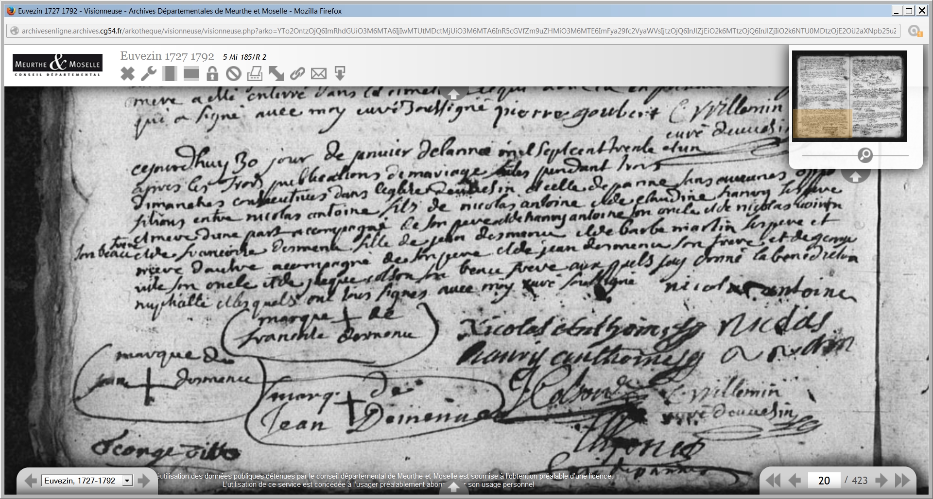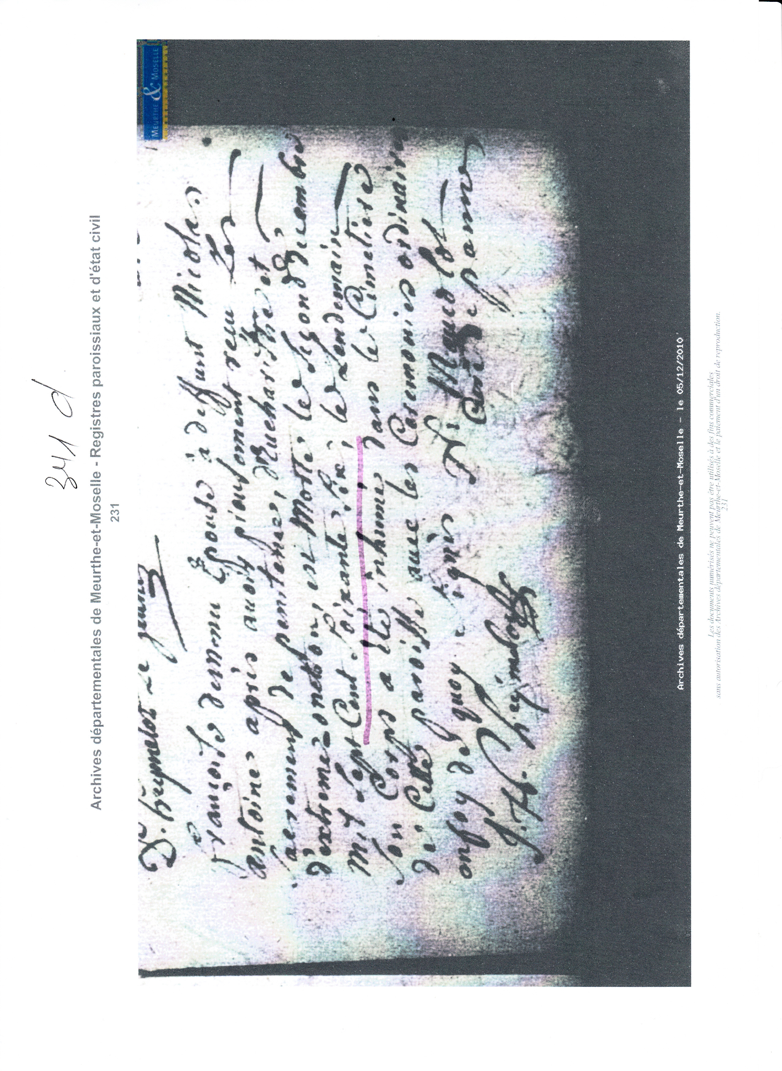 Mariage : 30 janvier 1731 à Euvezin 54470 ( Source )