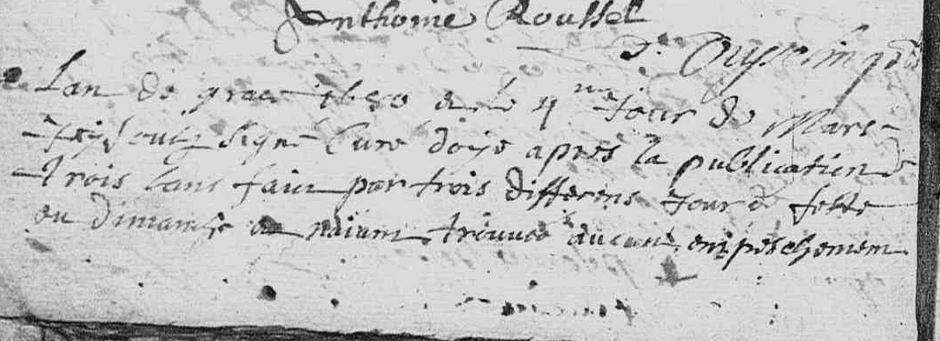 Nicolas IVART, joeune fils à marier de François YVART laboureur demeurant à Widehem et de Catherine DU MONT, assisté desdit François YVART et DU MONT ses père et mère, de Roboam DU RIEU mary et bail de Catherine YVART sa sœur, de Jehan DU MONT son cousin germain d’une part ; et Jehanne DE LE PLANCQUE joeunne fille à marier de deffunct Jehan DE LE PLANCQUE laboureur demeurant à Outrault et de Jehanne DU PONT, assistée et accompagnée d’icelle DU PONT sa mère, de Jehan DE LE PLANCQUE son frère, d’Anthoine PEUVION mary de Nicolle DE LE PLANCQUE sa soeur, de Nicolas DE LE PLANCQUE son cousin germain, de Jacques DESPERLECQUE mari de Jehanne MANGNIER? sa cousine germaine, de Eustache MACQUET sergeant et garde de la forest d’Hardelot aussy son cousin et autres leurs parents et bons amis…». Cm du le 17.07.1625, (Scotté à Boulogne).