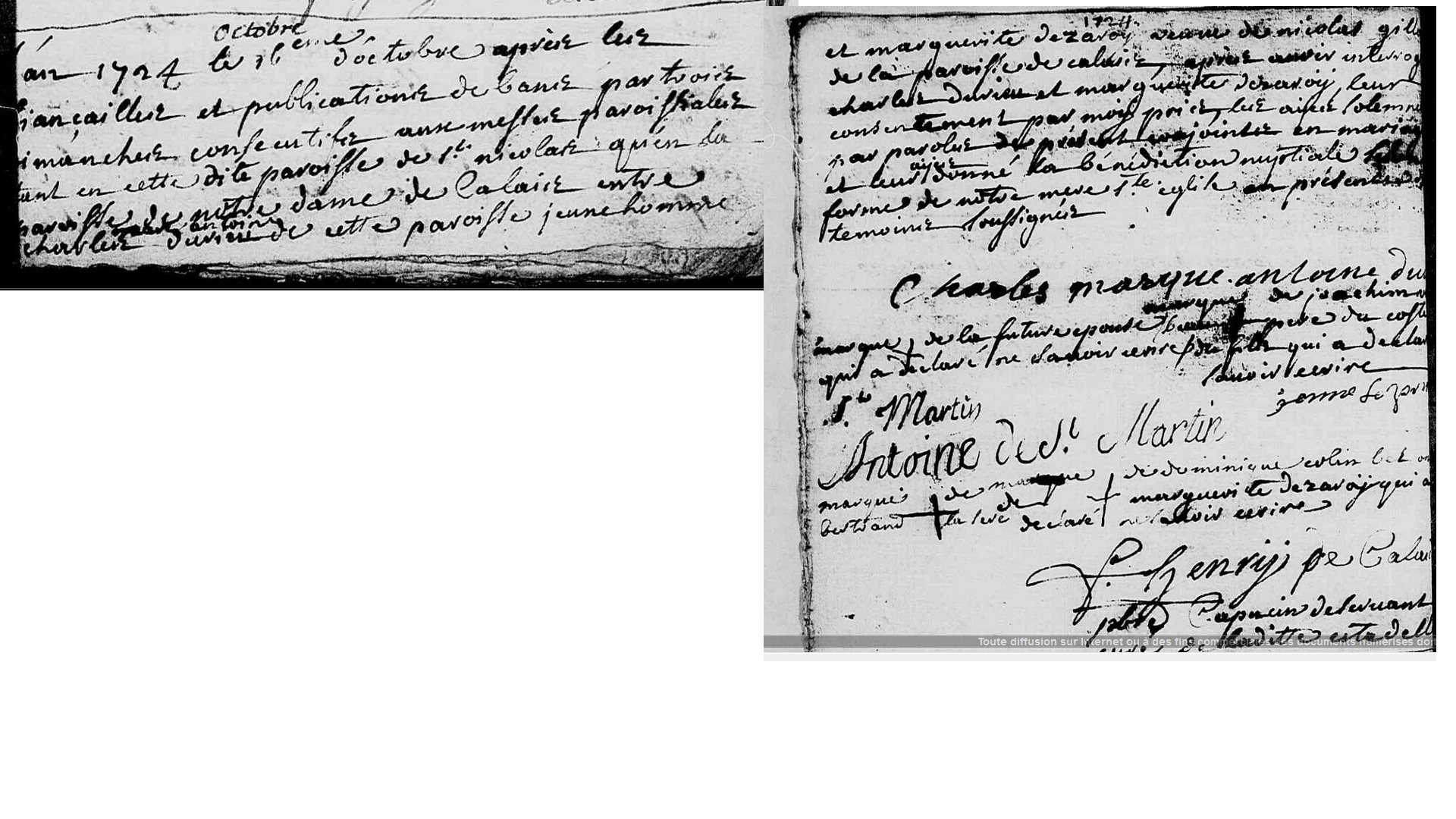 Mariage : 16 octobre 1724 à Calais la Citadelle 62100 ( Source )