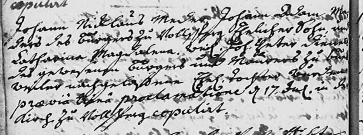 Mariage : 17 juillet 1764 à Volksberg 67290 Alsace ( Source )