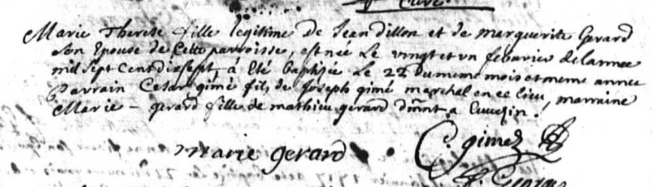 Témoins :GERARD Marie ( 1702 - ? )
