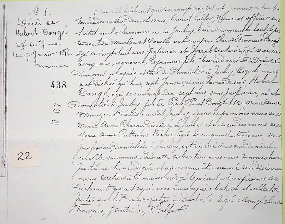 Naissance : 21 mai 1811 à Jaulny 54470 Décès : 17 janvier 1885 à Jaulny 54470
