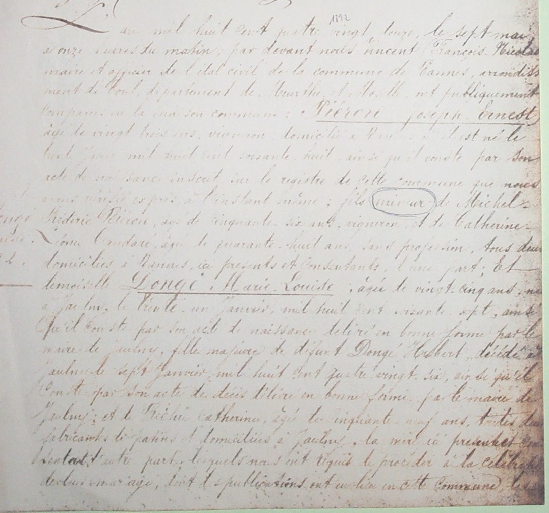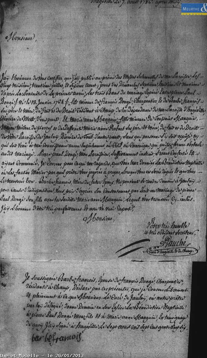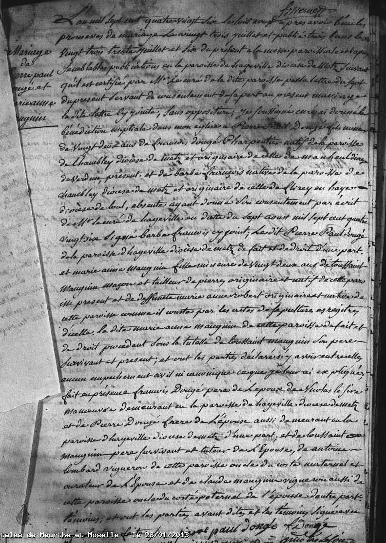 Mariage : 8 août 1786 à Jaulny 54470 ( Source )