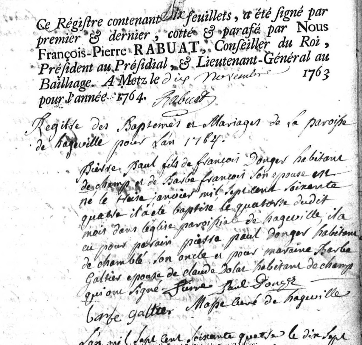 Naissance : 13 janvier 1764 à Hageville 54470 Champ ( Source )