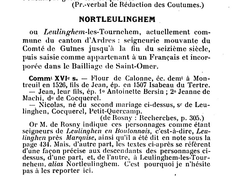1507 – Contrat de mariage du 21 janvier 1507, de Messire Flour de Calonne, Ecuyer, Seigneur, avec Damoiselle Ysabeau du Tertre, assistée de Guillaume (II) son père, et de Damoiselle Marguerite de la Neufveru, sa soeur, sa mère, de Lambert du Tertre, son frère, de Jacques du Tertre son frère, Ecuyer, Seigneur d’Esclemy, d’Enguerrand de Hesdigneul, mari de Marguerite du Tertre, sa sœur et de Catherine du Tertre, sa sœur, tous enfants dudit Guillaume (II) … dans lequel il est dit qu’au cas où il n’y ait pas d’enfant de ce mariage, que la dot de la future épouse retournera au profit de Lambert, suivant son traité de mariage avec Damoiselle de Jeanne de …Marles