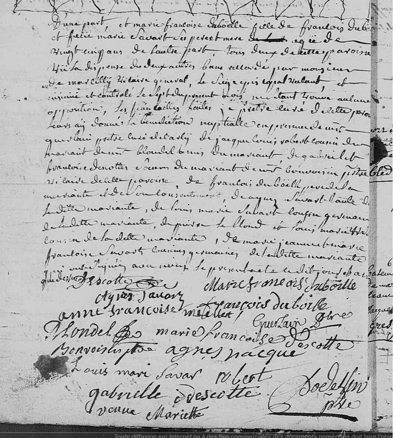 Témoins :DESCOTTE Gabrielle ( 1712 - ? )