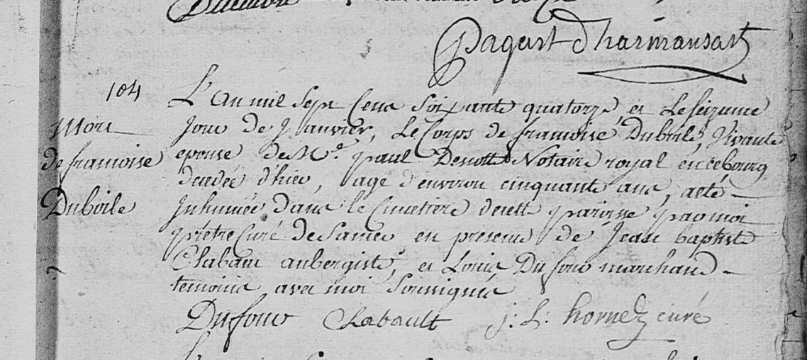 Père : DUBOILLE François ( ~ 1690 - 1760 )