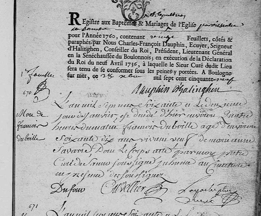 Naissance : vers 1690 à Henneveux 62142 Décès : 1er janvier 1760 à Samer 62830 ( Source )