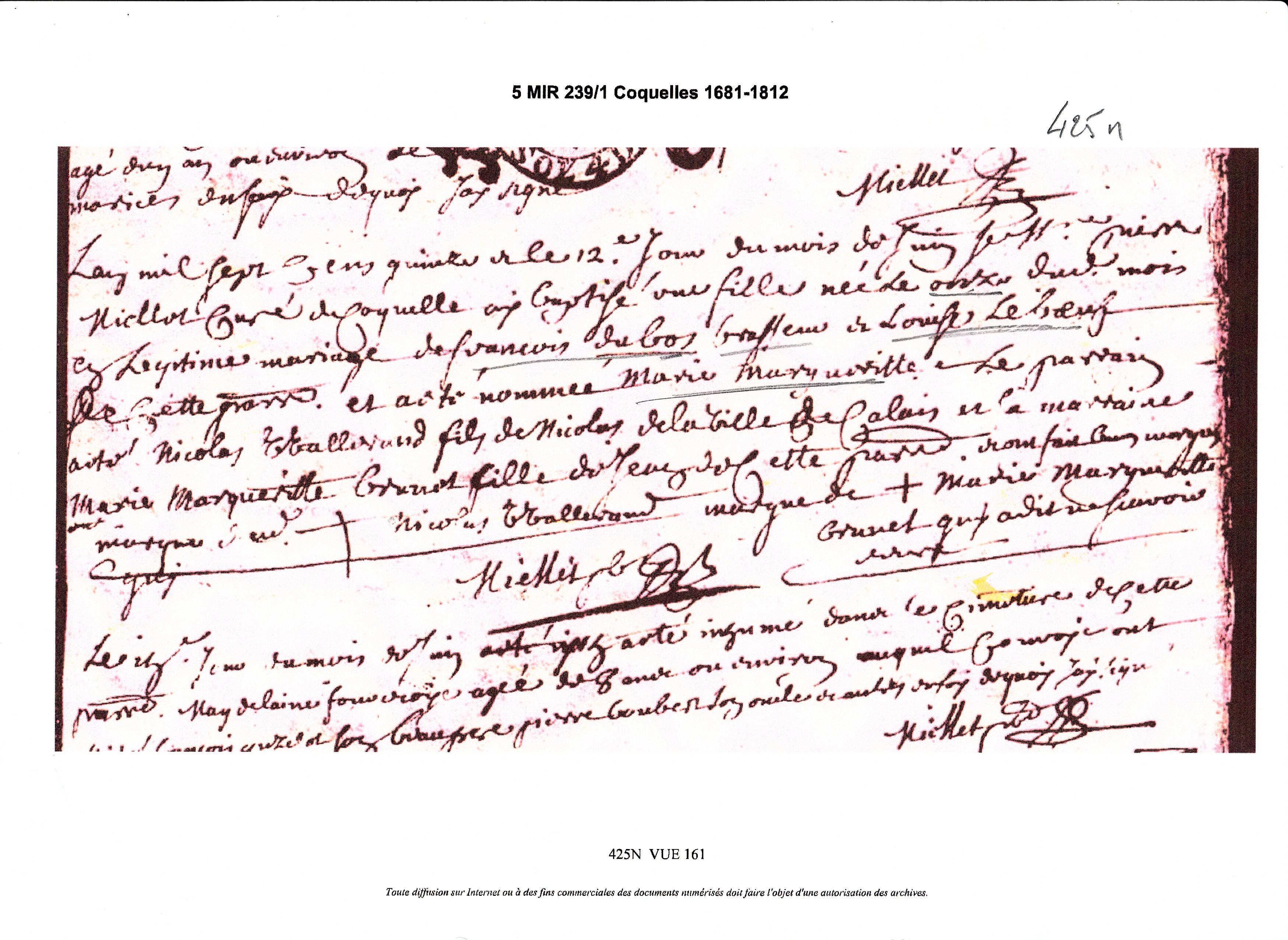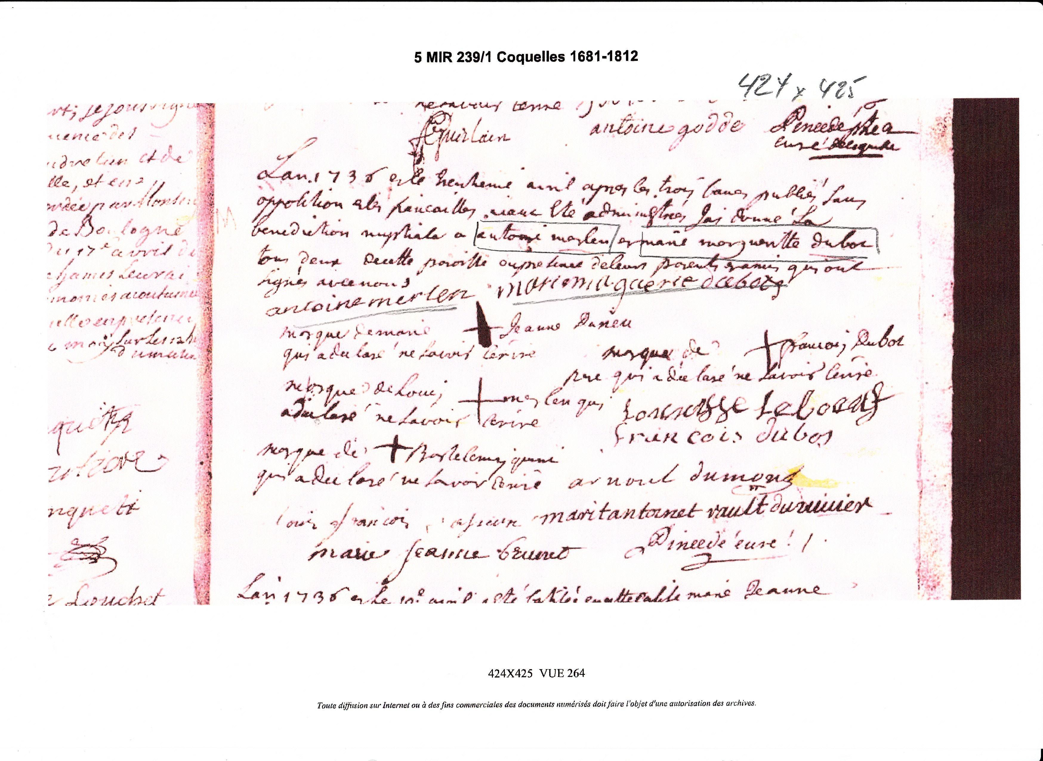 Mariage : 23 juillet 1712 à Coquelles 62231 ( Source )