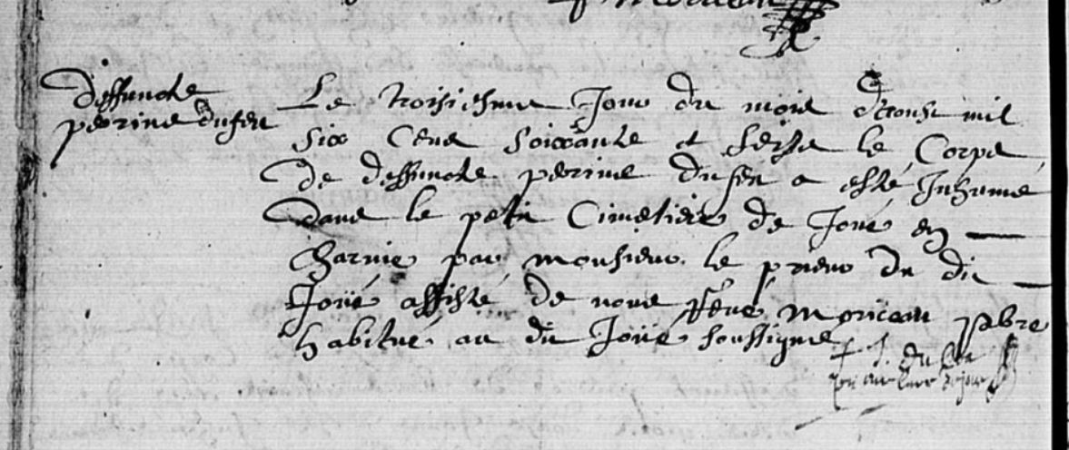 Décès : 3 août 1676 à Joué en Charnie 72540 ( Source )