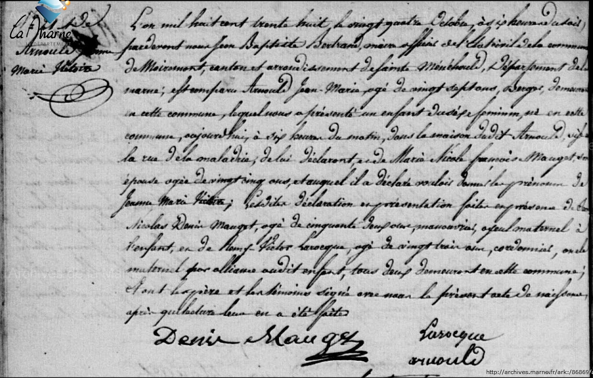 Témoins :MAUGET Nicolas Louis ( (c) 1779 - ? )