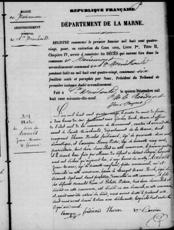 Décès : 4 février 1880 à Moiremont 51 ( Source )