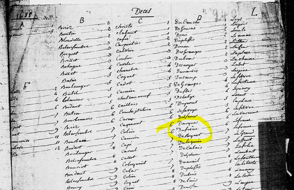 Décès : 27 novembre 1688 à Calais Saint Pierre 62100 ( Source )