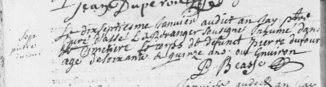 Naissance : calculée 1639 à Voutré 53600 Décès : 17 janvier 1714 à Assé-le-Bérenger 53600 ( Source )
