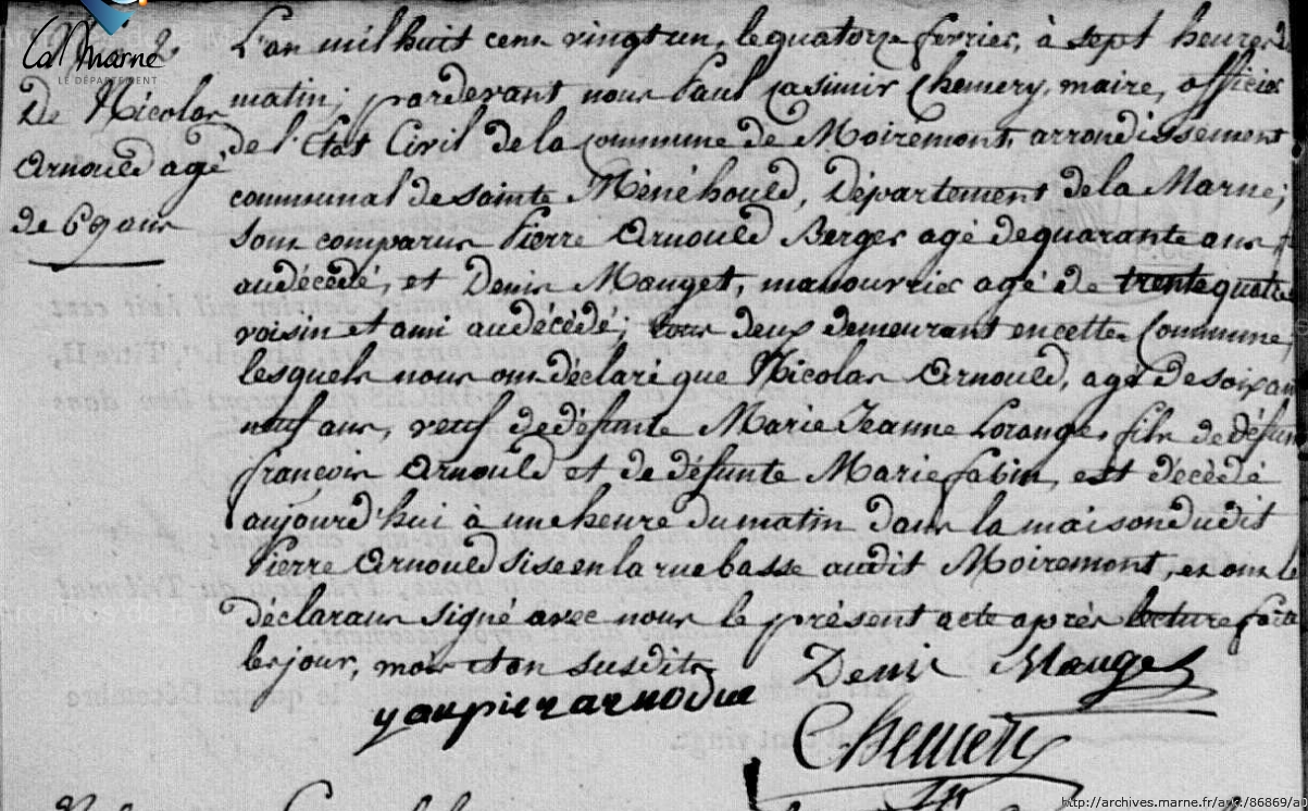 Décès : 14 février 1821 à Moiremont 51 ( Source )