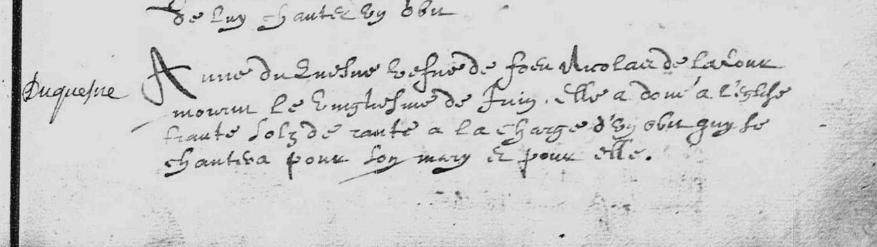 Père : DUQUESNE Antoine ( ~ 1500 - ? )