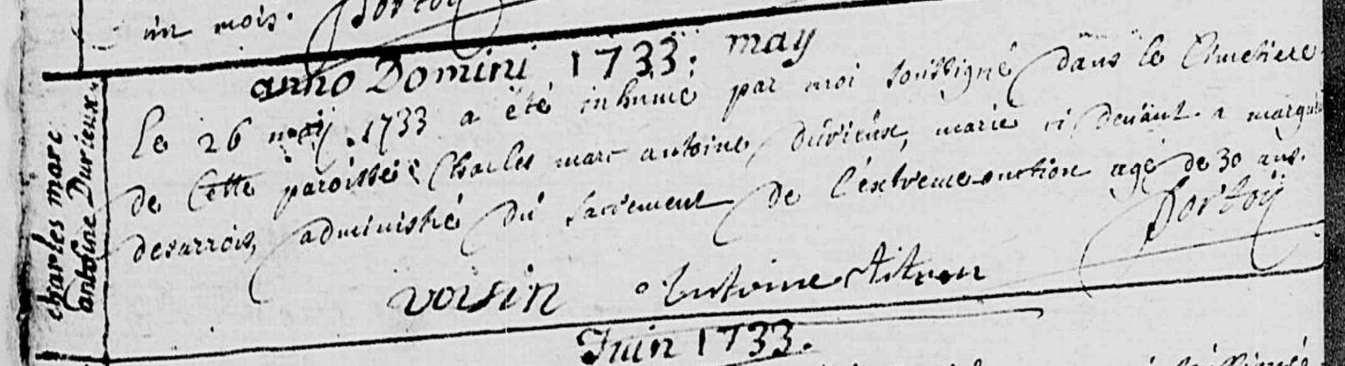 Père : DURIEUX Charles Marc Antoine ( 1703 - 1733 )