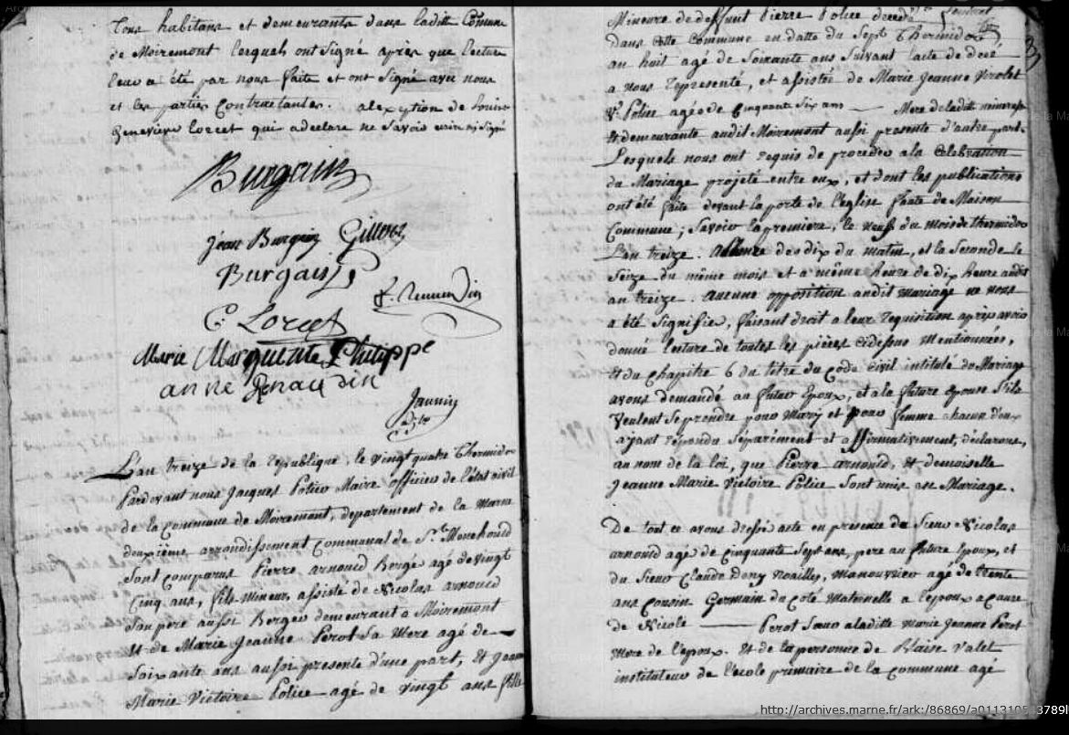 Mariage : 12 août 1805 à Moiremont 51 ( Source )