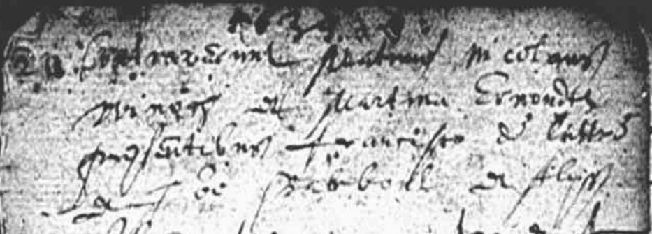 794) Vente N° 126 le 20/1/1648 : Jan ERNOULT l'aisné et Jan ERNOULT le joeusne, Nicolas WINOCQ et Martine ERNOULT sa femme, les dits ERNOULT enffans de feu Jean, dems hors la porte du Haultpont de ceste ville ; à Hubert ERNOULT fils Hubert et Martin DECUPPER bgs maresquiers, dems hors la dite porte ; le droict et action qu'ils ont en un vivier nommé « Poitevin » situé au « Westbrouck ». Union avec Martine ERNOULT
