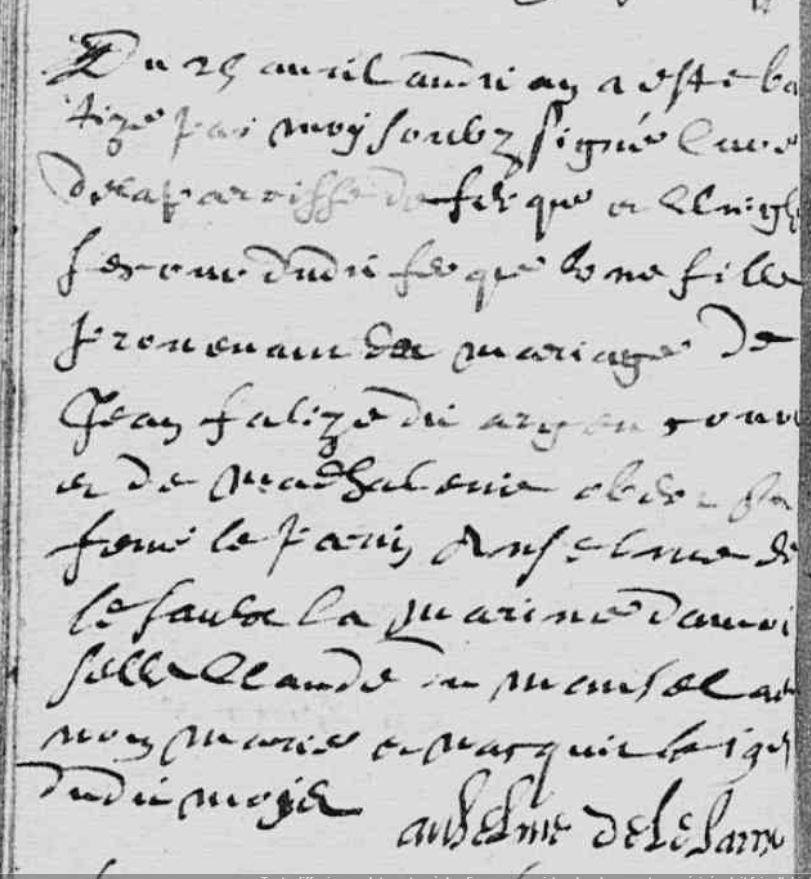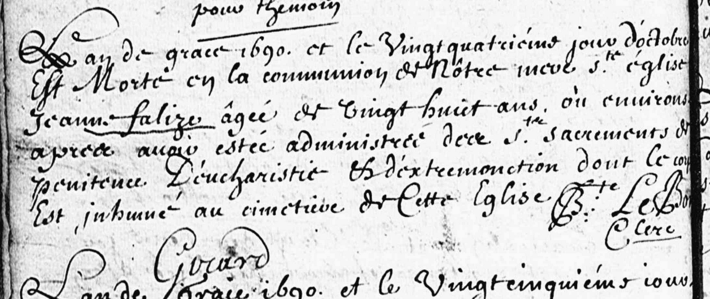 Jeanne Falize est marraine en avril 1676