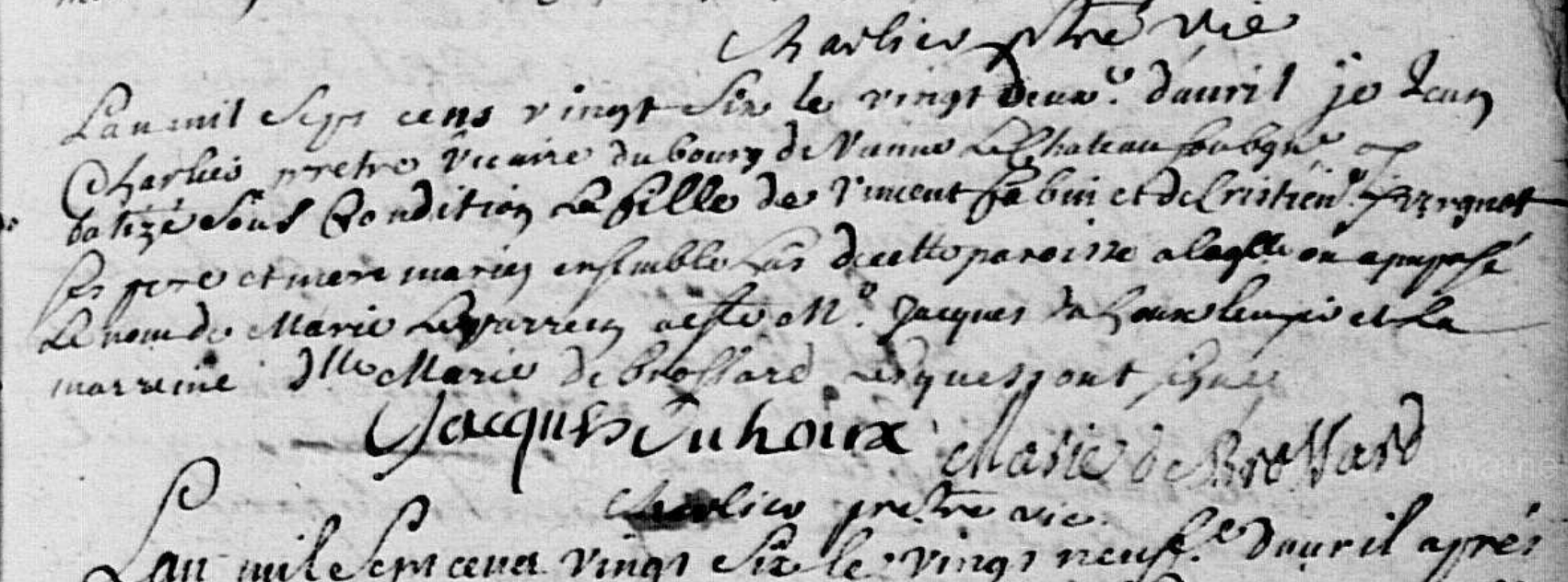 Témoins :DUHOUX Jacques ( ? - ? )