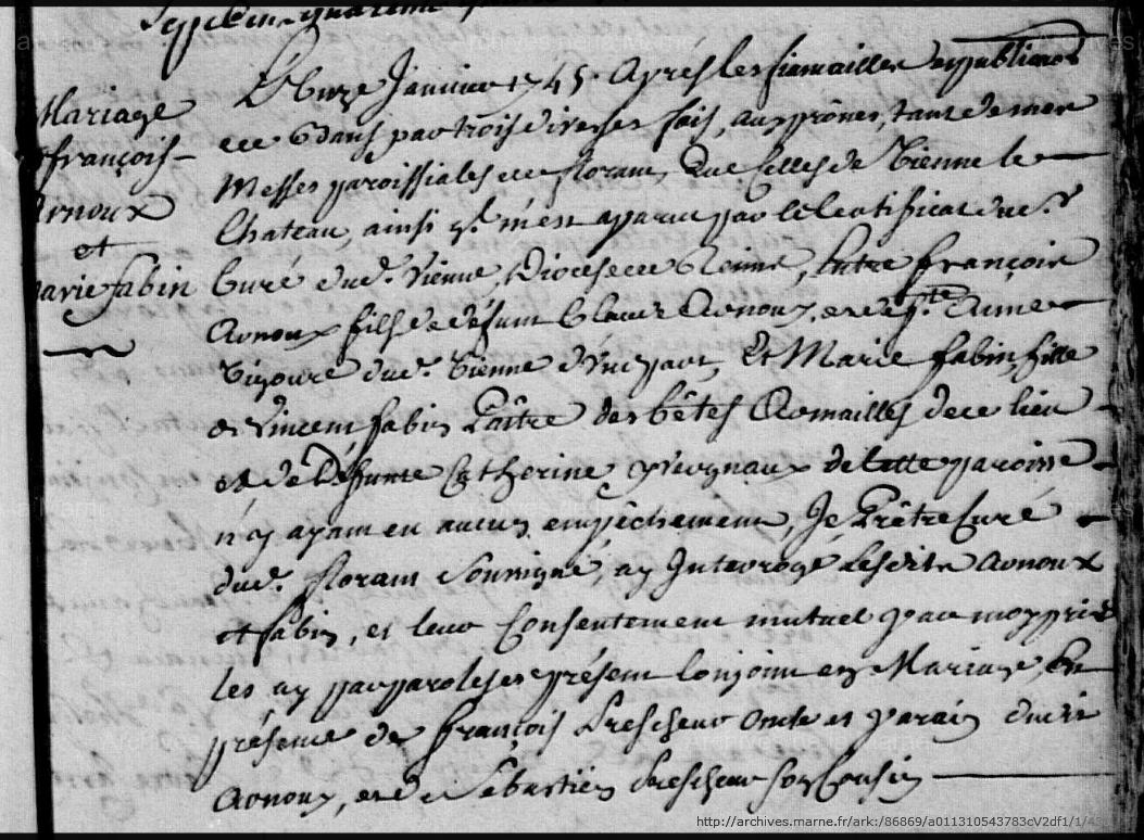 Mariage : 11 janvier 1745 à Florent-en-Argonne 51800 ( Source )