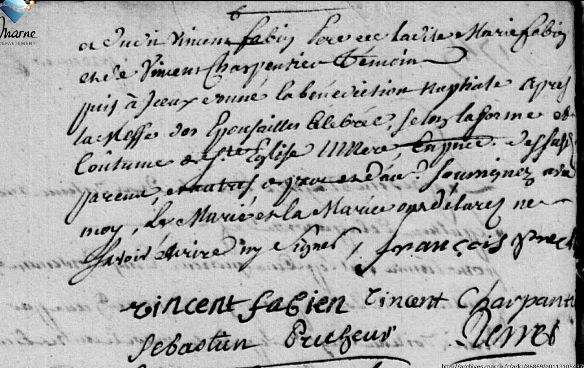 Témoins :FABIEN FABIN Vincent ( ? - > 1745 )