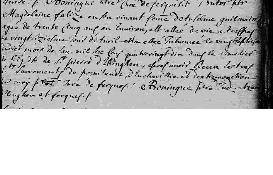Décès : 26 avril 1690 à Ferques 62250 ( Source )