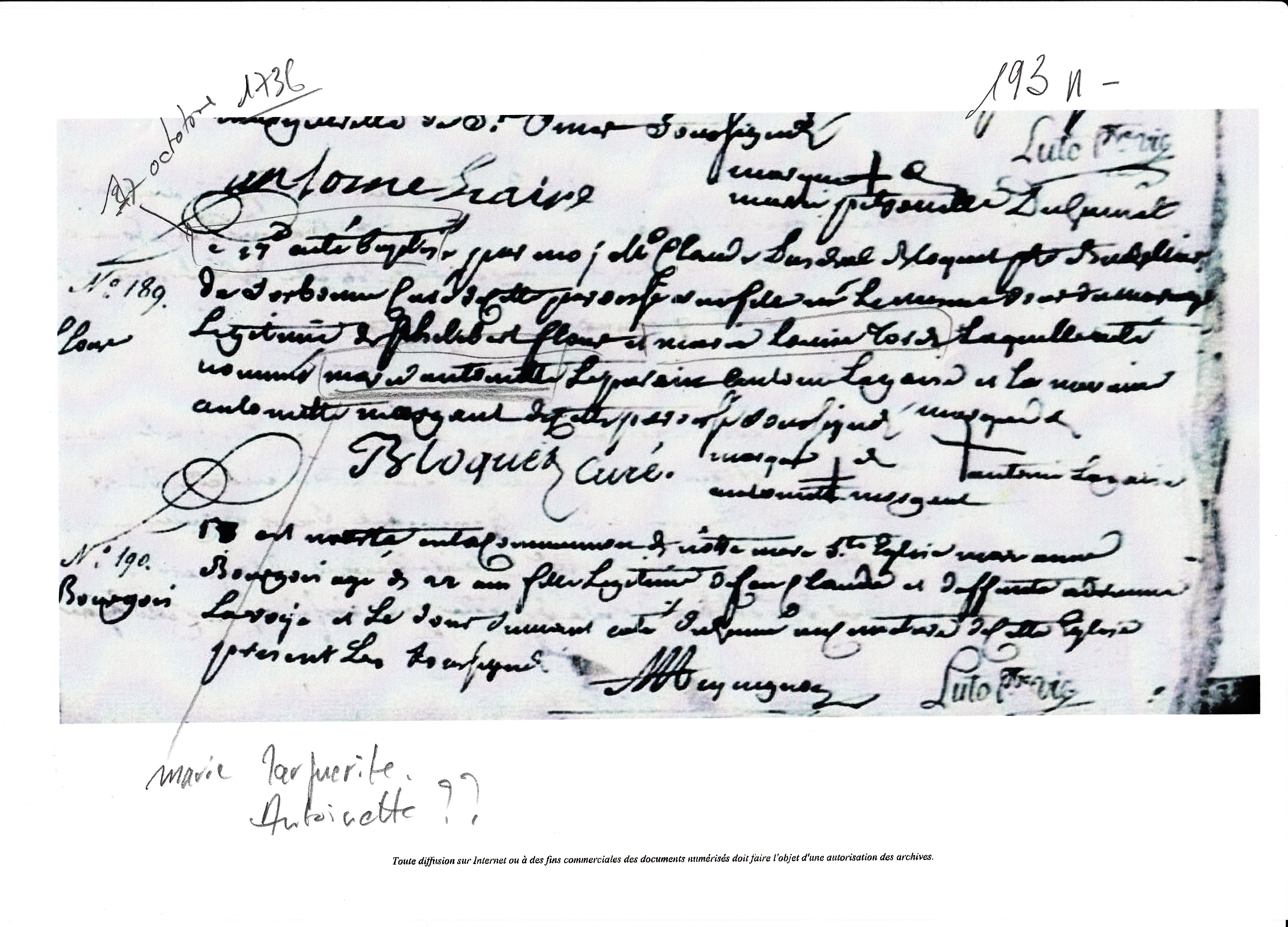 Signe Marie Anne Le Queutre, son père ne signe pas