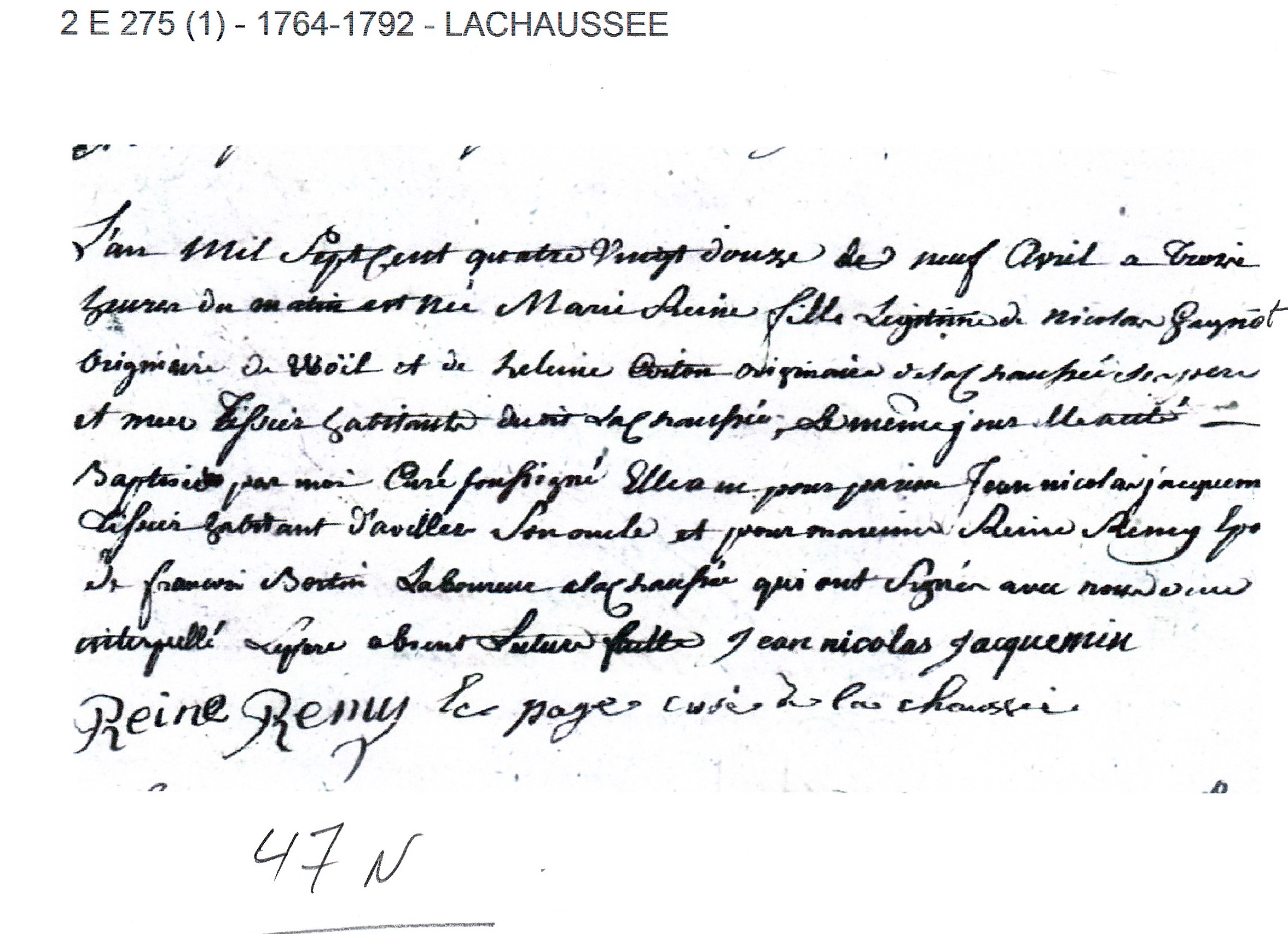 Naissance : 11 juillet 1736 à Lachaussee 55210