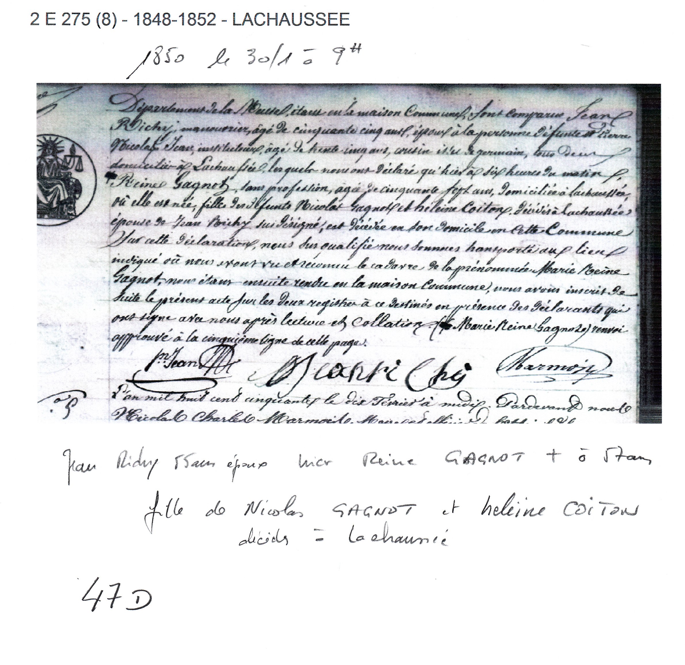 Décès : 29 janvier 1850 à Lachaussee 55210 ( Source )