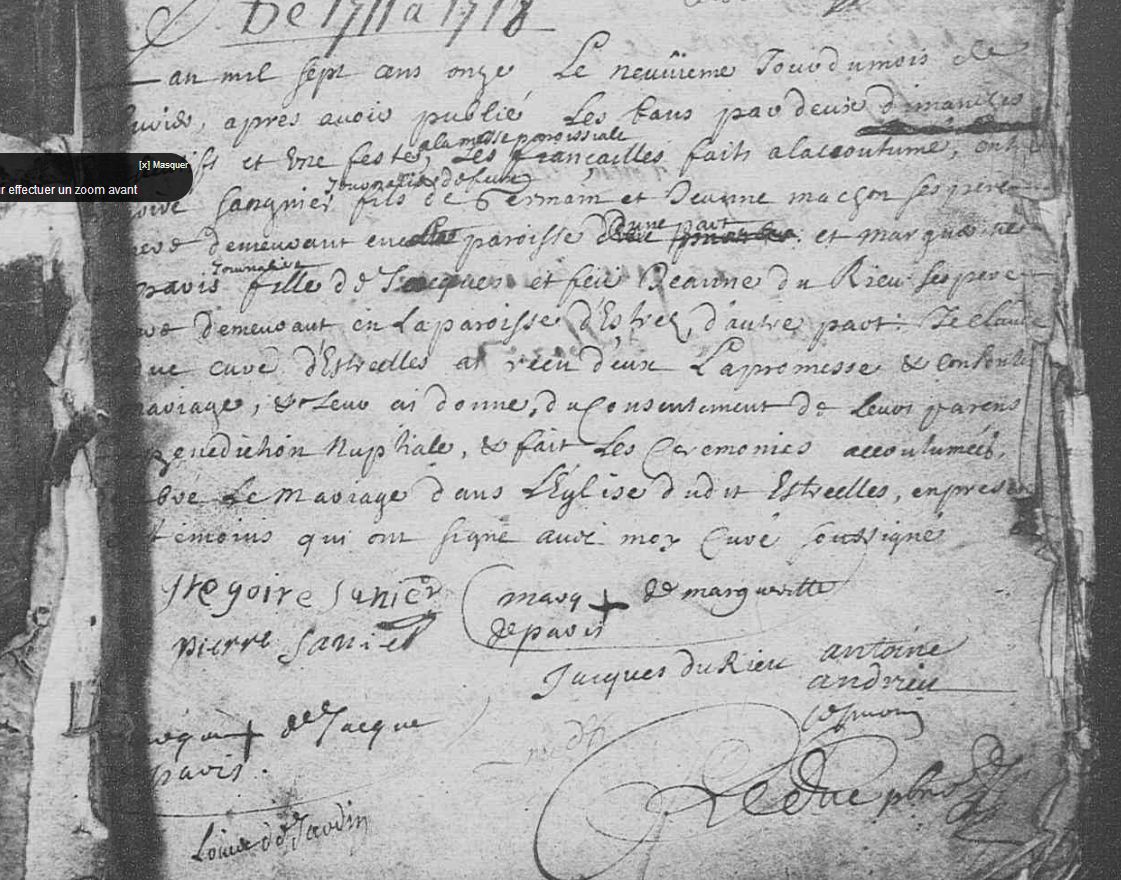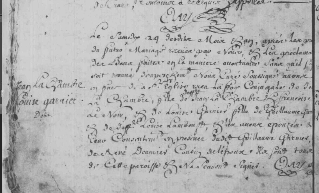 Mariage : 24 septembre 1695 à Izé 53160 ( Source )