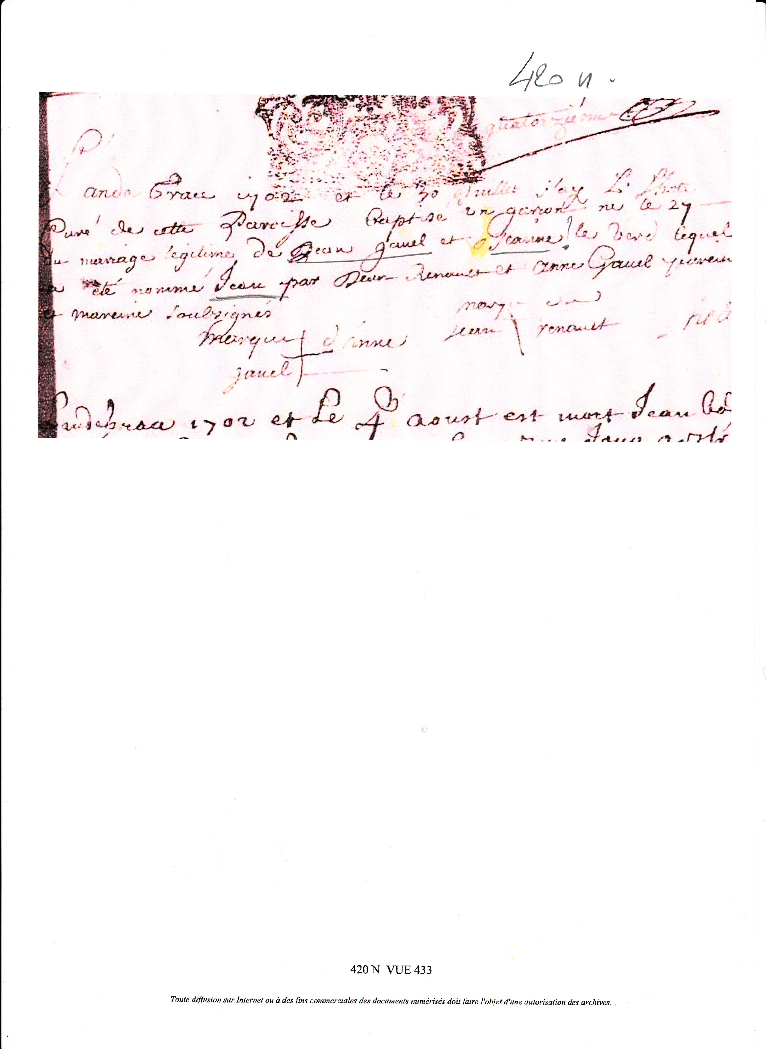 Enfants : GAVELLE Pierre Louis ( 1701 - ? )